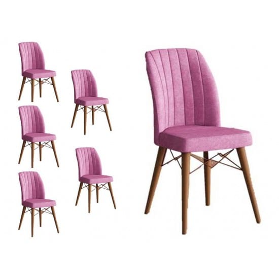 Set 6 Scaune tapitat dining/bucatarie, Lirona Rozalin, material textil, cadru metal, picioare Lemn